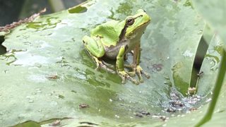 ビオトープ水あります。三角も水きてます。石橋も湿り気あります。この水でどうなるのかな。
