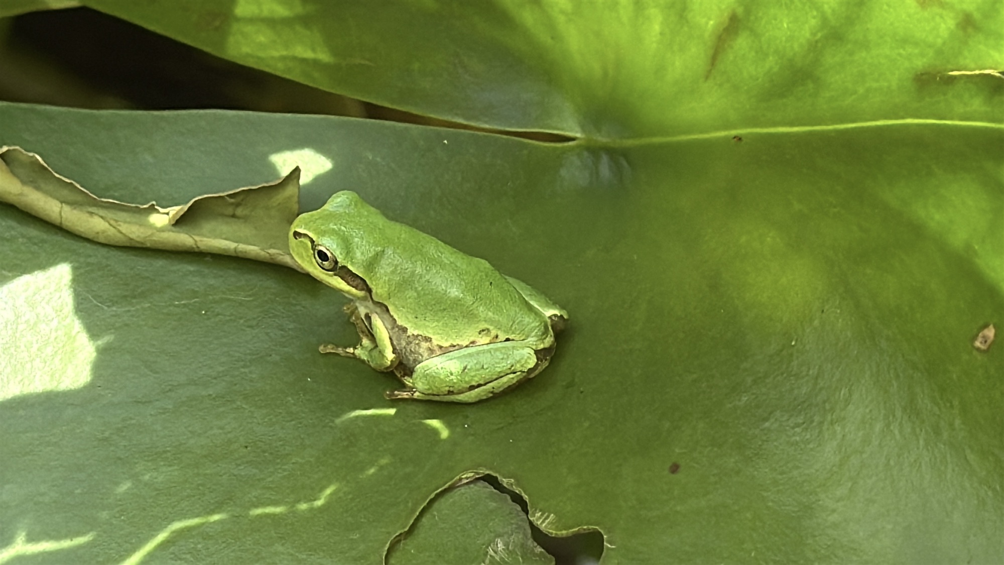 ラスト睡蓮がきのうの嵐と雹で傷ついていました。