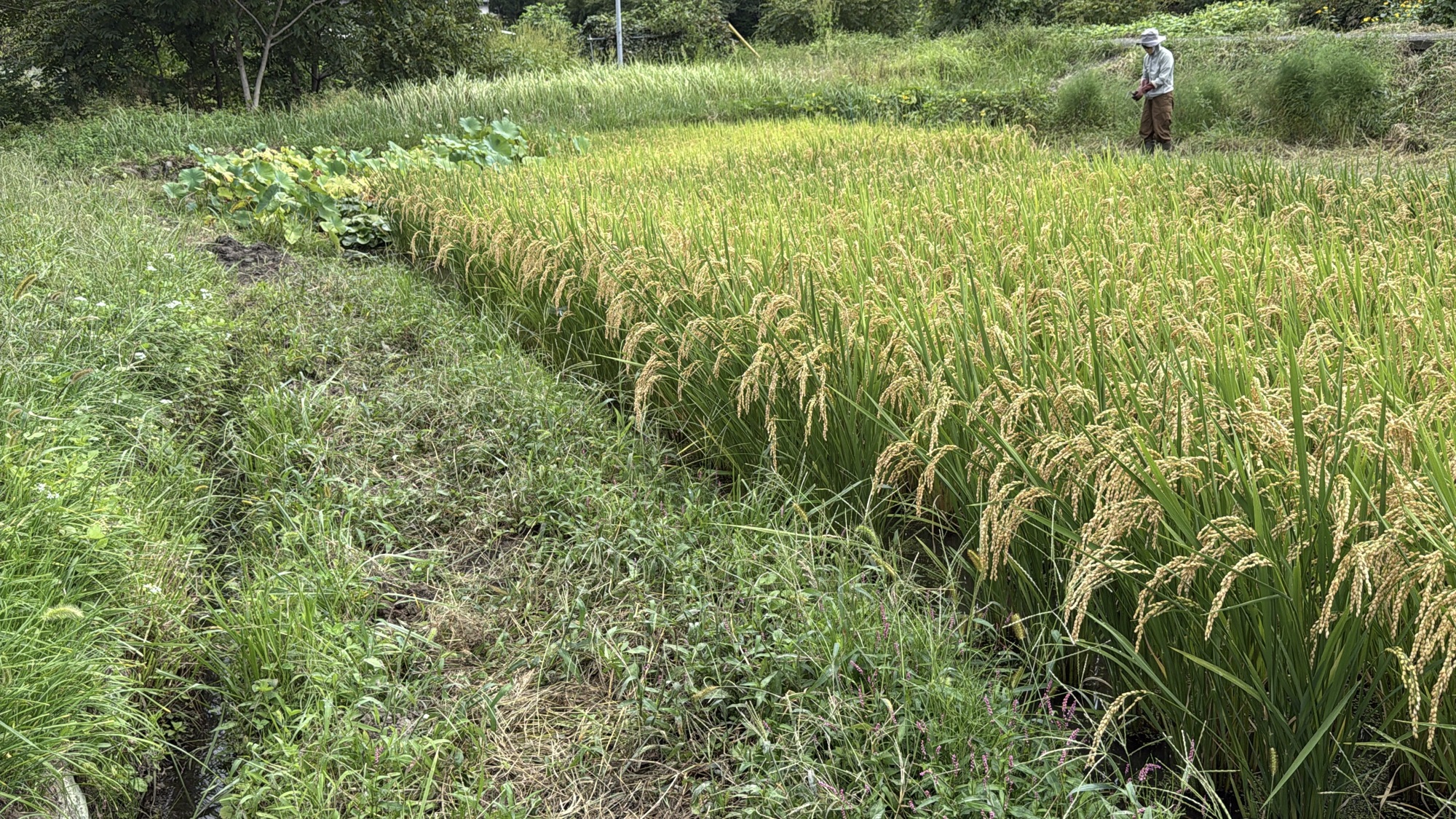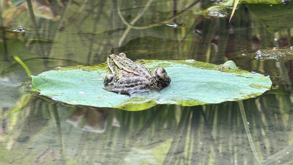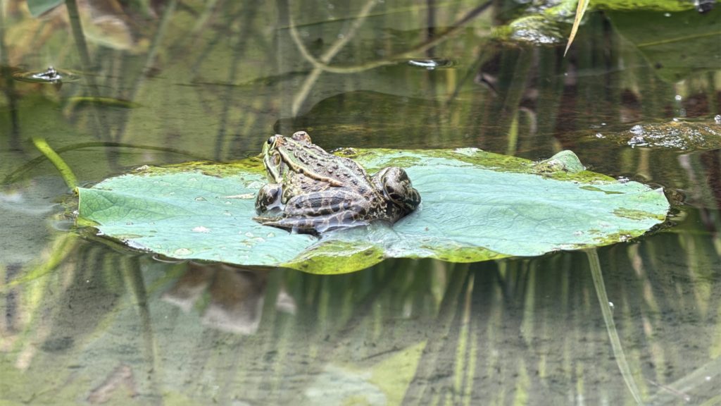20250916めだかちゃんに魚道を たんぼはたけ 2025.09.16 田んぼのみずを落とせるように水路をつくります。 とのさまガエルがいつものハスの上でゆっくり。 コールアンドレスポンスもゲロゲロ。 映ってないけどオニヤンマさんは何度も周回。 かわになちゃんがたくさんたくさん。やごさんも。 水の中はめだかちゃん、かにさん、いもりさん。がむしさんもいました。 あれちの花にはみつばちさんやあしながちゃん。 今日もみんながんばってます。