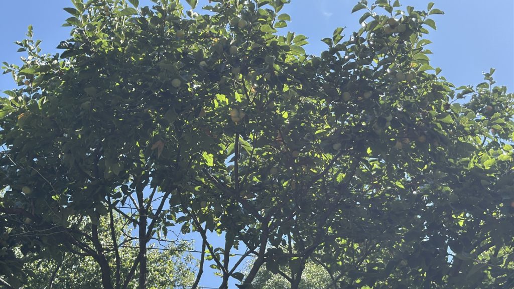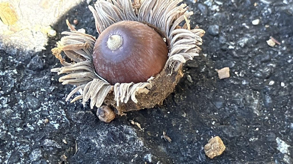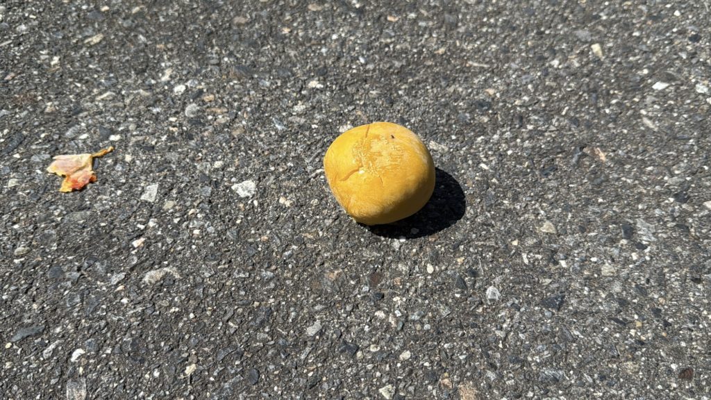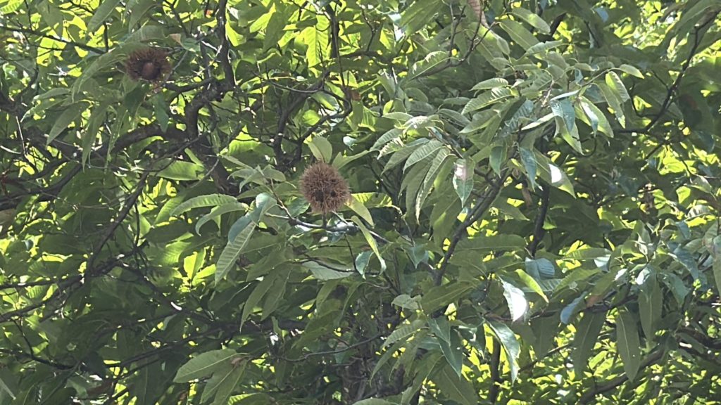山には柿がなっています。栗もなっています。どんぐり落ちてます。