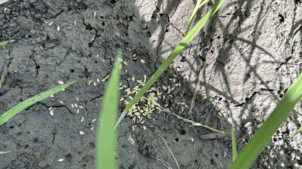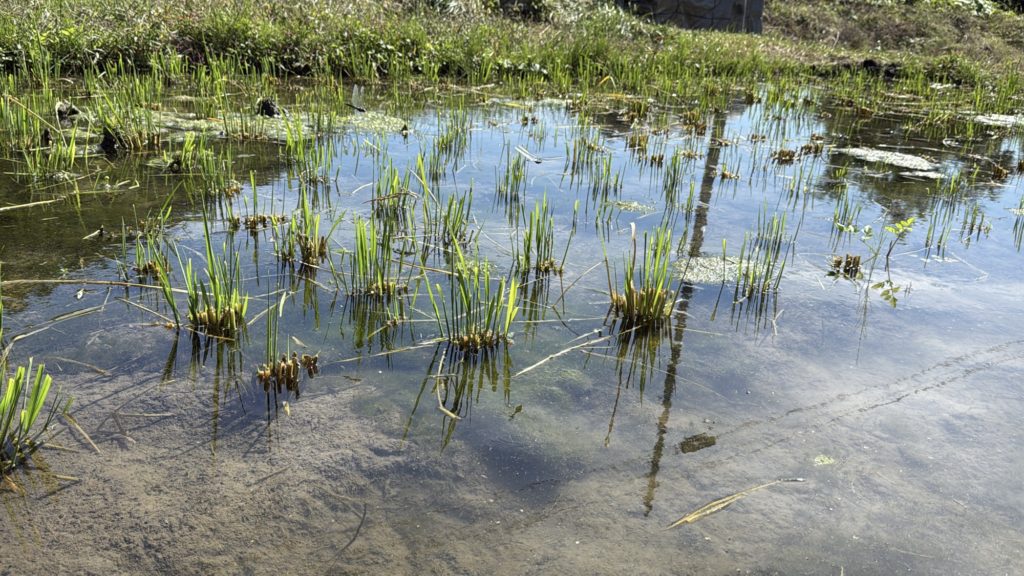 石橋田んぼの水路が詰まり気味。