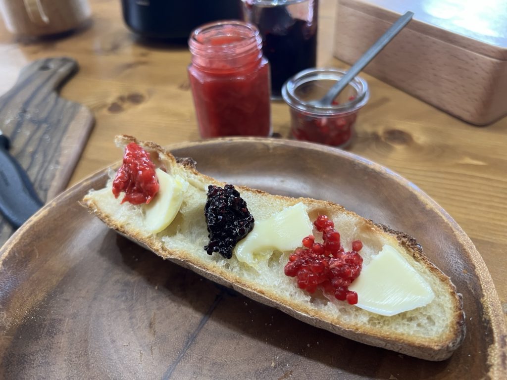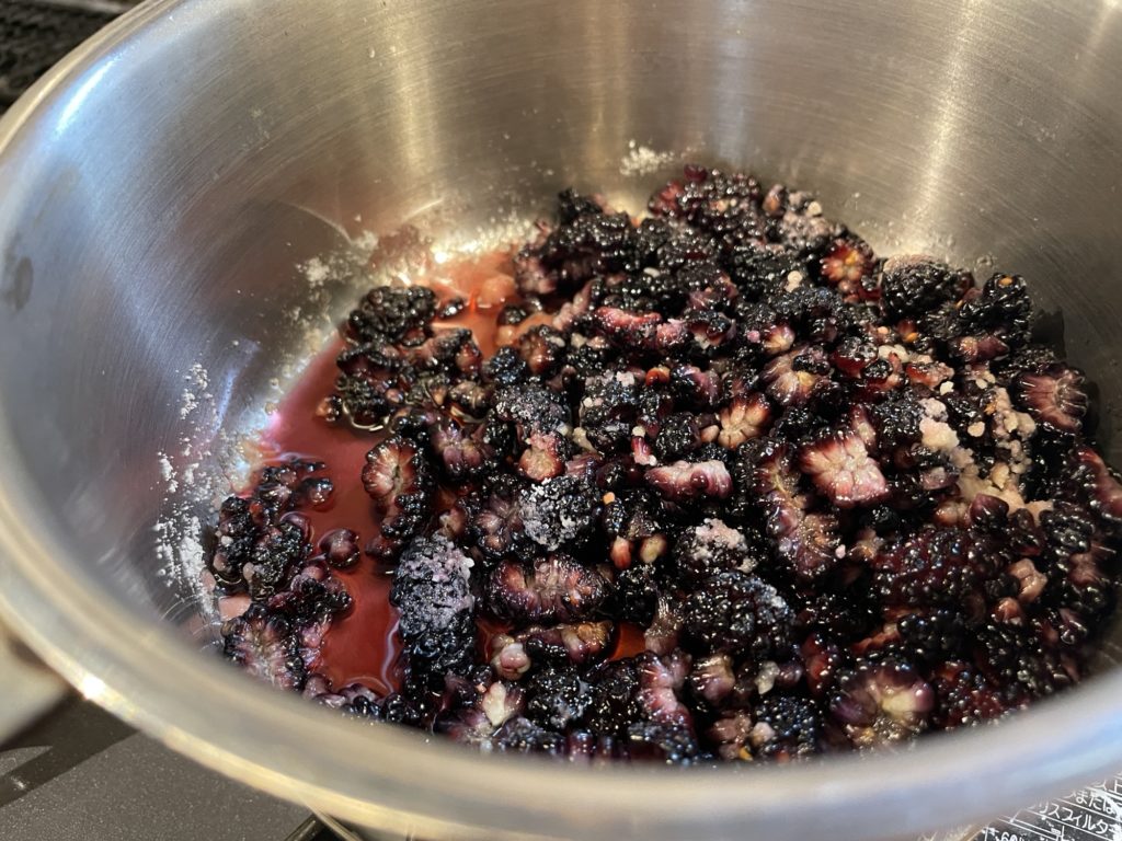 20250615ベリーの季節 たべもの 2025.06.152025.09.12 本日のデザート: 手前から、桑の実(マルベリー)、ラズベリー、甘夏、ニワウメ ニワウメはタネを取り除いてジャムに 桑の実も軸を取ってジャムに できあがり。べりのバラ子も大切に。 バケットと無塩バターでぜいたくな朝食