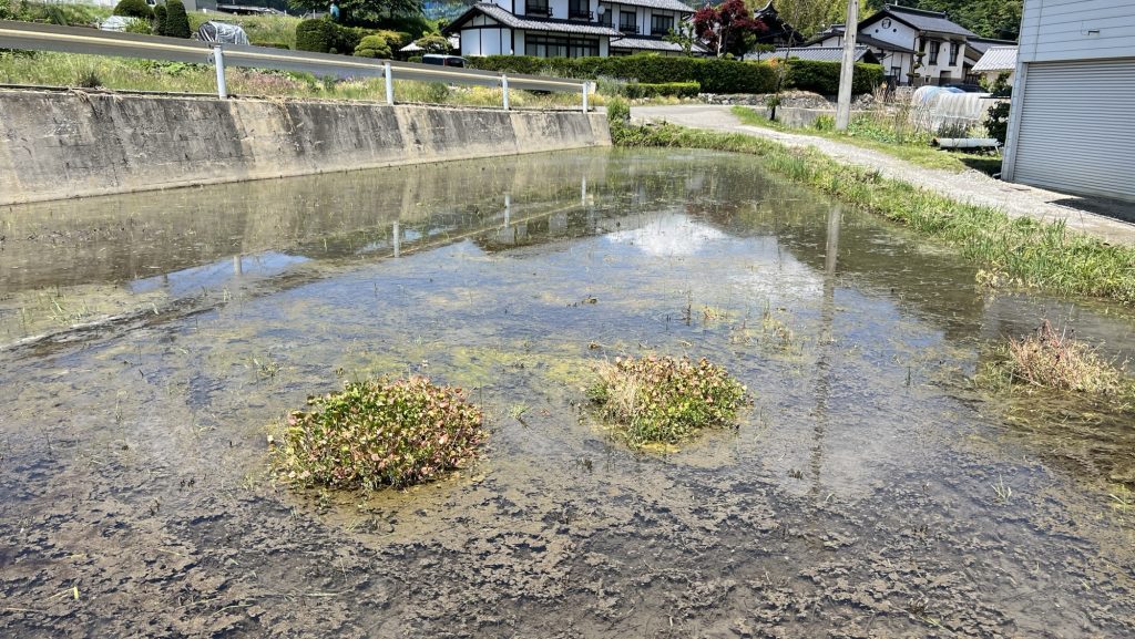 その後は本番で三角田んぼの田植えの続きでした。苗箱半枚、思ったほどすすまなかったかも。