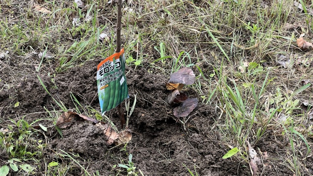 はたけでもぐらさんと一緒に穴掘ってインゲンのタネをまきました。もぐら農法?です。モグラルート4号線。